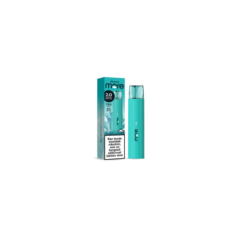 Nicorex MORE e-sigaret - loodud spetsiaalselt suitsetajate jaoks. Nüüd uus More 2.0 suurema ja võimsama akuga, millega saad 700 mahvi! Suurem aku tagab, et saad vedeliku lõpuni ära kasutada, ilma et peaksid muretsema maitse kadumise pärast või kahtlustama toodet praagis. Uus MORE on käepärane ja mugav ning kohe kasutusvalmis suupärase läbipaistva huulikuga e-sigaret, mis sobib ideaalselt kõigile suitsetajatele vähemkahjulikuma alternatiivina. Tänu läbipaistvale huulikule tead täpselt, kauaks e-sigaretti veel jagub ning saad jälgida vedeliku jääki. - Rohkem maitset; - Keraamiline küttekeha, mis toodab väga puhast ja rikkalikku maitset; - Lisaks 2% nikotiinisisaldusele saadaval ka 1% nikotiinisisaldusega e-sigaret; - Ei toimu põlemist; - Toimub aurustumine; - Ei vaja hooldamist; - Puudub halb lõhn; - Kohe kasutusvalmis; Variatsioonid: Mentool – värske Loobu stressivabalt tavasigarettidest, ära muretse ja usalda ennast ning tee juba täna esimene samm tavasigaretist loobumiseks. Skysmoke uued e-sigaretid on just selleks loodud. Meie oleme seda meelt, et e-sigaretid on oluliselt parem valik kui tavasigaret. Spetsifikatsioon: 700 kuni ühe sekundi pikkust mahvi Vedeliku kogus: 2 ml Aku mahutavus: 500 mAh Kasutamine: Ava pakend ja eemalda seade. Eemalda seadme otsas olevad tihendid/kile. Seadme kasutamiseks tee huulikust ca. ühesekundiline tõmme. Koostisosad: Glütserool, propüleenglükool, nikotiin 2%, lõhna- ja maitseained.