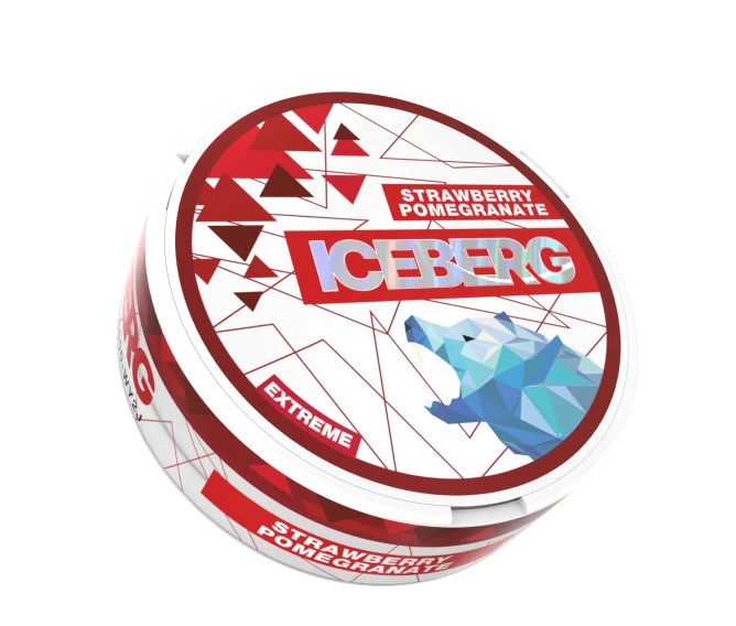 Bränd: ICEBERG Maitse: Maasika-granaatõun Tugevus: Väga tugev Ühe padja kaal: 0,6 g Pakendi sisu: 12 g Nikotiini ühe padja kohta: 30 mg Padjade arv pakendis: 20 Nikotiini sisaldus: 50 mg/g Formaat: Slim